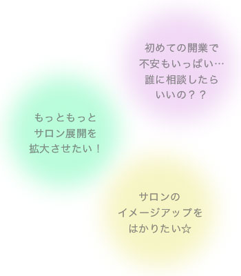 サロン開業〜OPENまで丁寧にサポート・開業後の悩み・不安など…10年以上のキャリアと現場で得た販売・サロン展開・サービスのノウハウなど、
